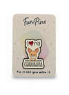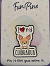 Declare your passion for chihuahuas with this eye-catching metal pin. Ideal for devoted dog owners, this wearable accessory lets you express your bond with these spirited, pint-sized companions in style. Clip it to your jacket, backpack, or bag and watch it become a beloved conversation piece among fellow dog lovers. Engineered with sturdy metal construction, it resists tarnishing and daily wear. A meaningful keepsake for chihuahua parents or the perfect gift for someone who adores these charming little dogs.