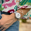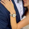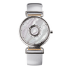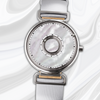 Die Bella Silver Pearl Damenuhr von Magneto Watch verbindet zeitlose Eleganz mit luxuriösen Details. Ihr schimmerndes Zifferblatt aus echtem Perlmutt zieht bewundernde Blicke auf sich und harmoniert perfekt mit dem silberfarbenen Gehäuse aus hochwertiger Alloy. Das graue Satin-Lederarmband unterstreicht den stilvollen Look und bietet angenehmen Tragekomfort. Gehäusedurchmesser: 36 mm, Gehäusehöhe: 10,5 mm. Ideal für Frauen, die klassische Schönheit und exklusive Materialien schätzen.