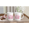This beautiful ceramic mug is perfect for any event of the day. Your morning coffee, a hot chocolate, or any other hot beverage you enjoy. The mug is glossy white with a colored rim, inside, and handle. The prints come out beautifully and vividly on it. The print retains its quality and luster when used in both microwaves and the dishwasher.